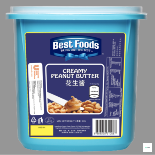 Best Foods Peanut Butter in a 3-liter container offers a large volume of creamy or crunchy peanut butter, perfect for bulk use. It's ideal for commercial kitchens, bakeries, or for large families who love peanut butter. The smooth, rich texture and authentic peanut flavor make it a versatile ingredient for sandwiches, baking, sauces, and snacks.