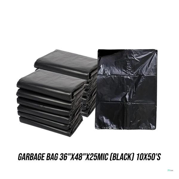 LACY's Garbage Bags are designed to provide superior durability and reliability for all your waste disposal needs. This pack includes a roll of black garbage bags, each containing 50 bags. Each bag measures 36 inches by 48 inches and has a thickness of 30 microns, making them strong and resistant to tears and punctures.