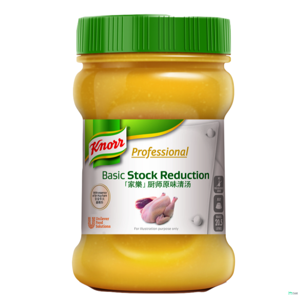 Knorr Basic Stock Reduction in an 820-gram container, a versatile and concentrated stock base perfect for enhancing the flavor of soups, stews, sauces, and gravies. Ideal for professional kitchens and home chefs seeking consistent and rich flavor in their dishes.