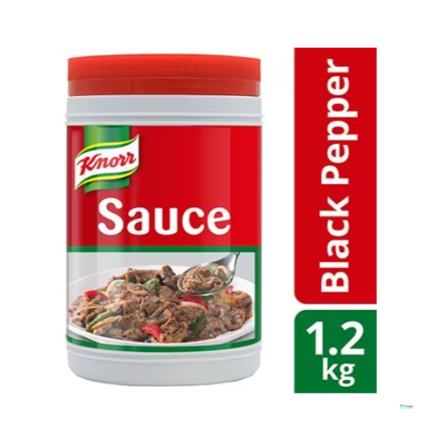 Knorr Black Pepper Sauce in a 1.2-kilogram container. This sauce provides a bold and spicy black pepper flavor, perfect for enhancing the taste of meats, vegetables, and stir-fries. Ideal for professional chefs and home cooks seeking consistent quality and flavor.