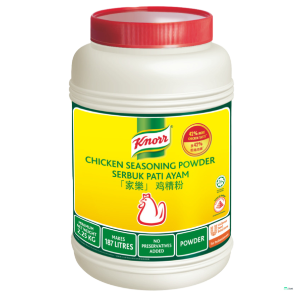Knorr Chicken Powder (2.25KG) is a premium-grade chicken seasoning that provides a robust, authentic chicken flavor to a variety of dishes. Ideal for use in large-scale cooking, this bulk-sized powder is perfect for soups, sauces, stews, and marinades. Its concentrated formula ensures a deep, savory taste, making it a valuable addition to any kitchen. Whether you're preparing meals for a restaurant, catering event, or large family gathering, Knorr Chicken Powder delivers consistent and delicious results every time.