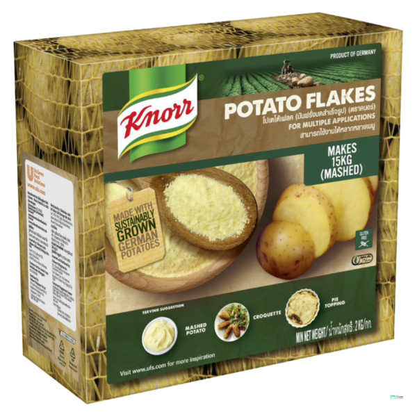 Knorr Potato Flakes (2KG) are a versatile and convenient ingredient for quick and easy potato dishes. Made from high-quality potatoes, these flakes dissolve easily in hot water to create smooth and creamy mashed potatoes. Ideal for busy kitchens or home cooks, they can be used in various recipes, including soups, stews, and casseroles, or simply as a side dish. The 2KG package size ensures you have a generous supply for multiple uses, offering both convenience and consistency in your cooking.