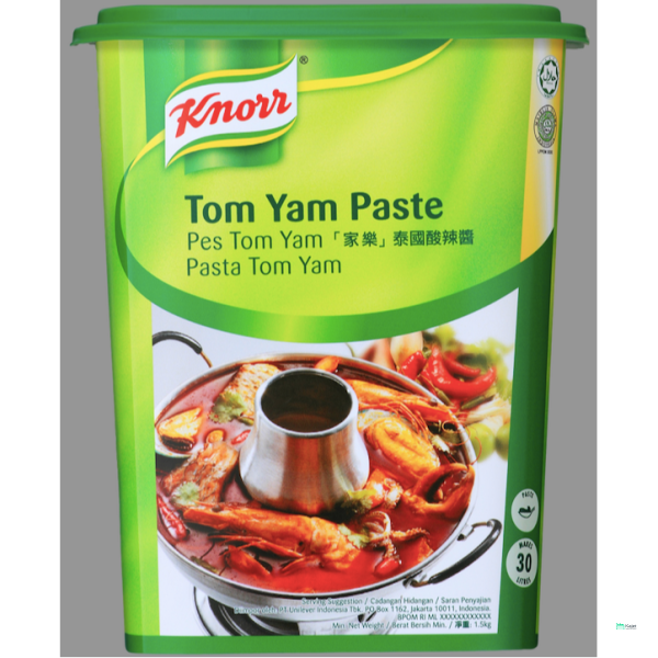 Knorr Tom Yam Paste is a rich and flavorful paste designed to create authentic Tom Yam soup with ease. The 1.5KG pack offers a generous amount of this tangy, spicy paste, which combines ingredients like lemongrass, galangal, kaffir lime leaves, and chilies to deliver the signature flavor of Thai Tom Yam soup. Ideal for commercial kitchens and home cooks alike, this paste allows you to quickly prepare a delicious, aromatic soup that's perfect for adding a kick to your meals.