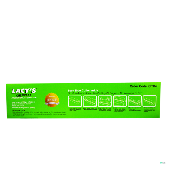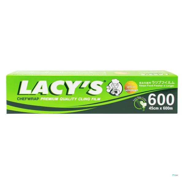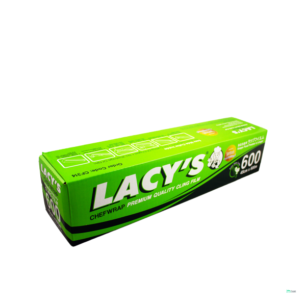 LACY's Cling Film is an essential kitchen tool designed to provide convenience and efficiency for food storage and preparation. This product features a roll of premium cling film measuring 45 cm in width and 600 meters in length, complete with a slide cutter for precise and easy dispensing.