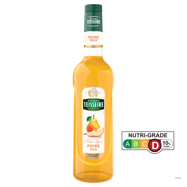 Sugar, water, pear juice from concentrate (10%), natural flavourings, acid: citric acid, colour: E150a.