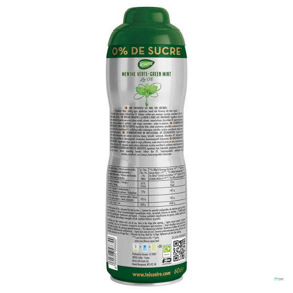 Minty flavour concentrated soft drink, with sweeteners.