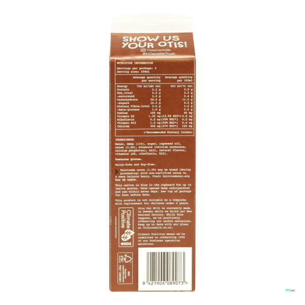 I'm Otis Oat M!lk, the Chocolate one. Made using 100% New Zealand oats and Fairtrade Certified Cocoa, I'm a naughty-but-nice plant based treat! High in calcium and fortified with vitamins D2, B2 and B12, I’m also a yummy source of dietary fibre. By adding me to checkout, you’re buying 6 x 1 litre carton.