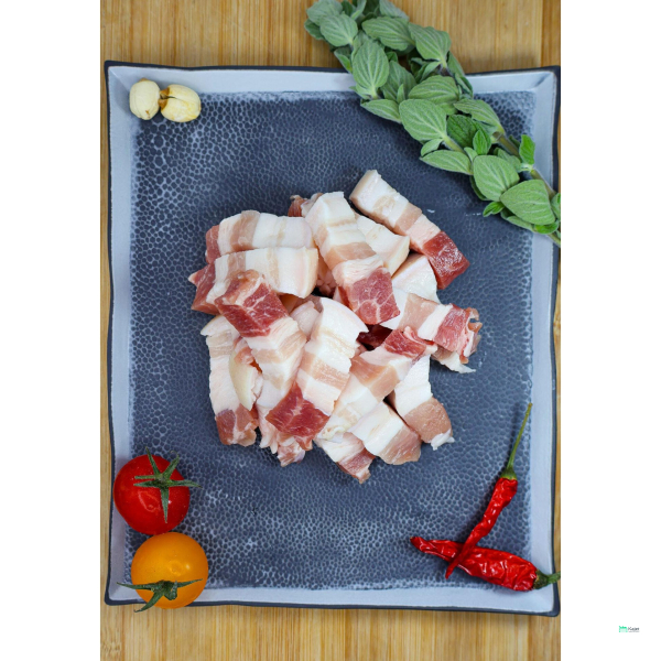 Origins: Brazil. Versatile and full of flavor, these pork belly cubes are perfect for stir-fries, soups, and slow-cooked dishes.