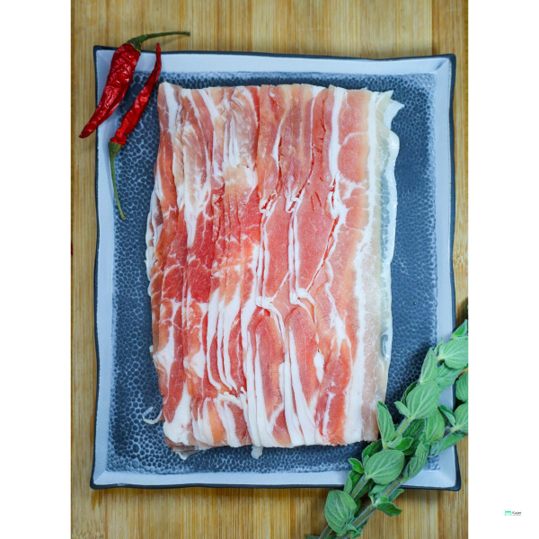 Origins: Brazil. Enjoy the rich flavor of pork belly, thinly sliced for shabu-shabu, perfect for hot pot dishes.