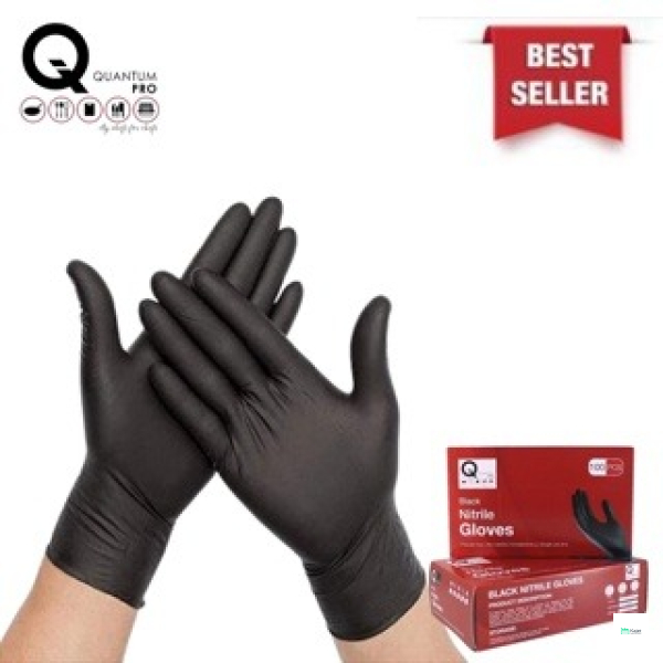 QUANTUM PRO DISPOSABLE GLOVES, BLACK PURE NITRILE SIZE S, 100PCS/BOX